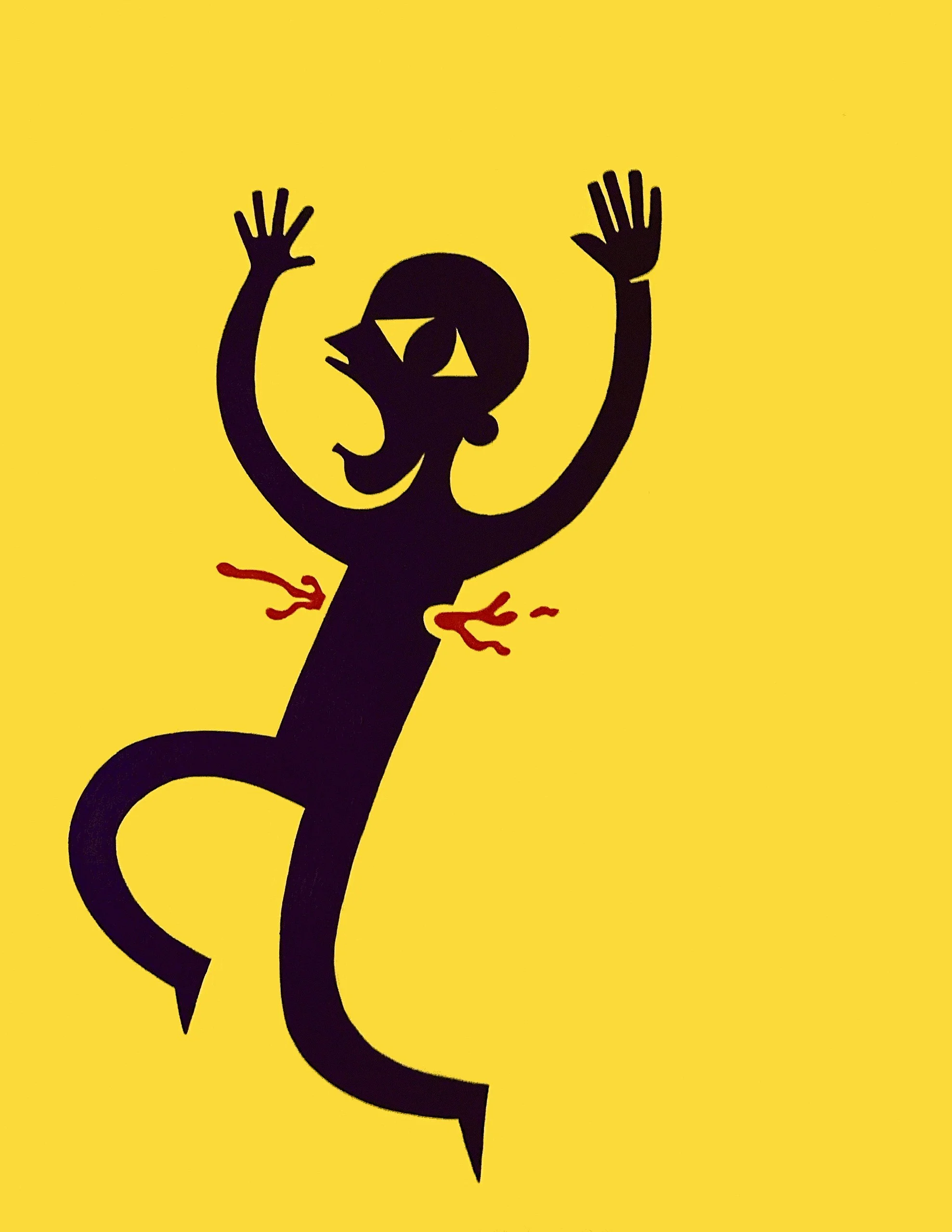 The Palette: I use a disarming, bright yellow background, a color typically associated with caution or cowardice, but here used to highlight the inescapable visibility of the violence.