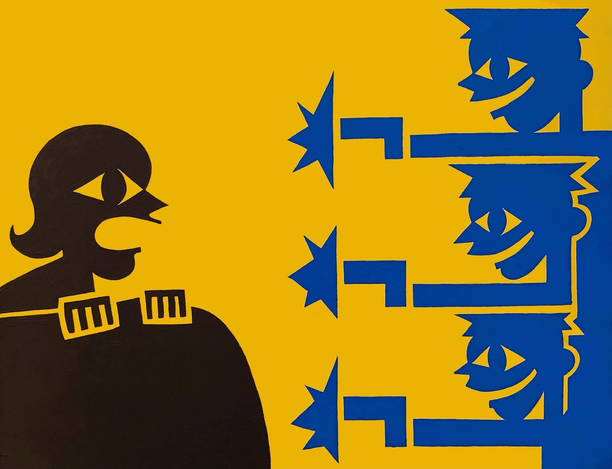 Take, for example, my painting of Breonna Taylor. The composition is stark. The blue figures are an overwhelming, multi-headed force, their weapons drawn, invading a domestic space. The figure of Taylor is silhouetted, defined by the violence acting upon her. The style lures the eye in with its graphic "pop" appeal, only to trap the viewer in the devastating reality of the subject matter. It is a "Trojan Horse" aesthetic, beauty used to deliver a hard truth.